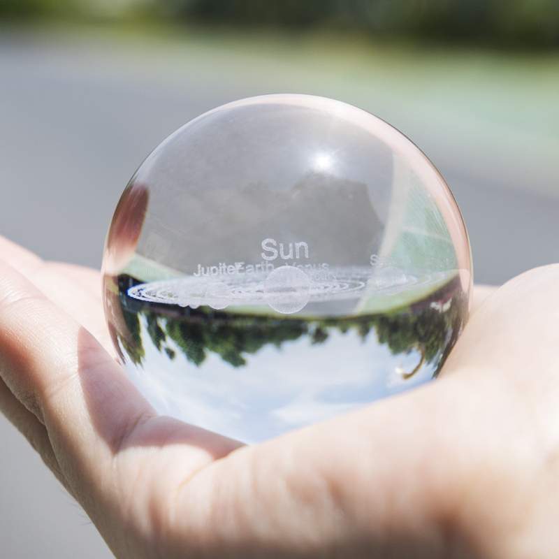 Hold the solar system in the palm of your hand. You can have a complete 360 Degree view of our universe. This 3D Solar System Crystal Ball provides a realistic view of all of our planets like it would be in real life. All planets are labeled with a beautiful white engraving, when light is laced below it, the Planets laser engravings will illuminate making it perfect for a night light.